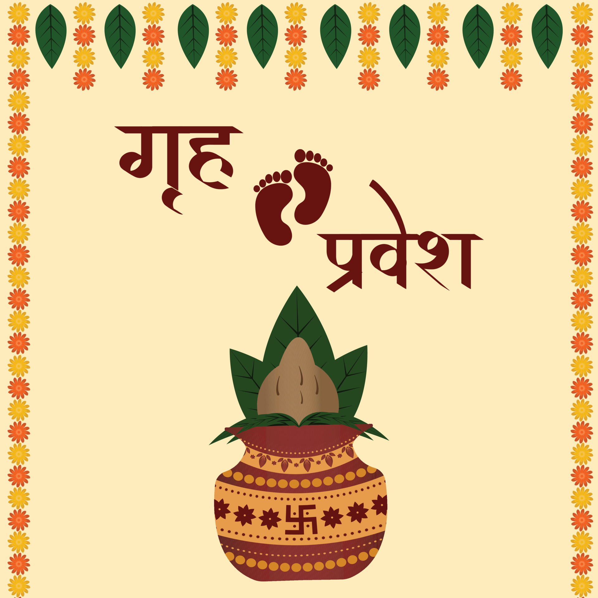 - पूजा की तैयारी: गृह प्रवेश की पूजा के लिए पूजा सामग्री जैसे कि रोली, चावल, दूर्वा, सुपारी, कलश, दीपक, नारियल, हल्दी, कुमकुम, नग केसर, फूल, गंगाजल, इत्यादि की तैयारी करें।